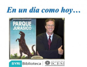 23 de Octubre del año 1942, nació Michael Crichton, médico, escritor, guionista y novelista estadounidense. Autor de obras tan populares como “Parque Jurásico”, “El mundo perdido”, “La amenaza de Andrómeda“, “Congo”, “Esfera” o “Acoso”. Muchos de estos libros han sido llevados al cine con guión del propio escritor. Tiene un record en su haber al haber conseguido tener al mismo tiempo el libro número uno (Acoso), la película número uno (Parque Jurásico) y la serie de televisión número uno (Urgencias). Hasta el momento sólo lo ha conseguido él.