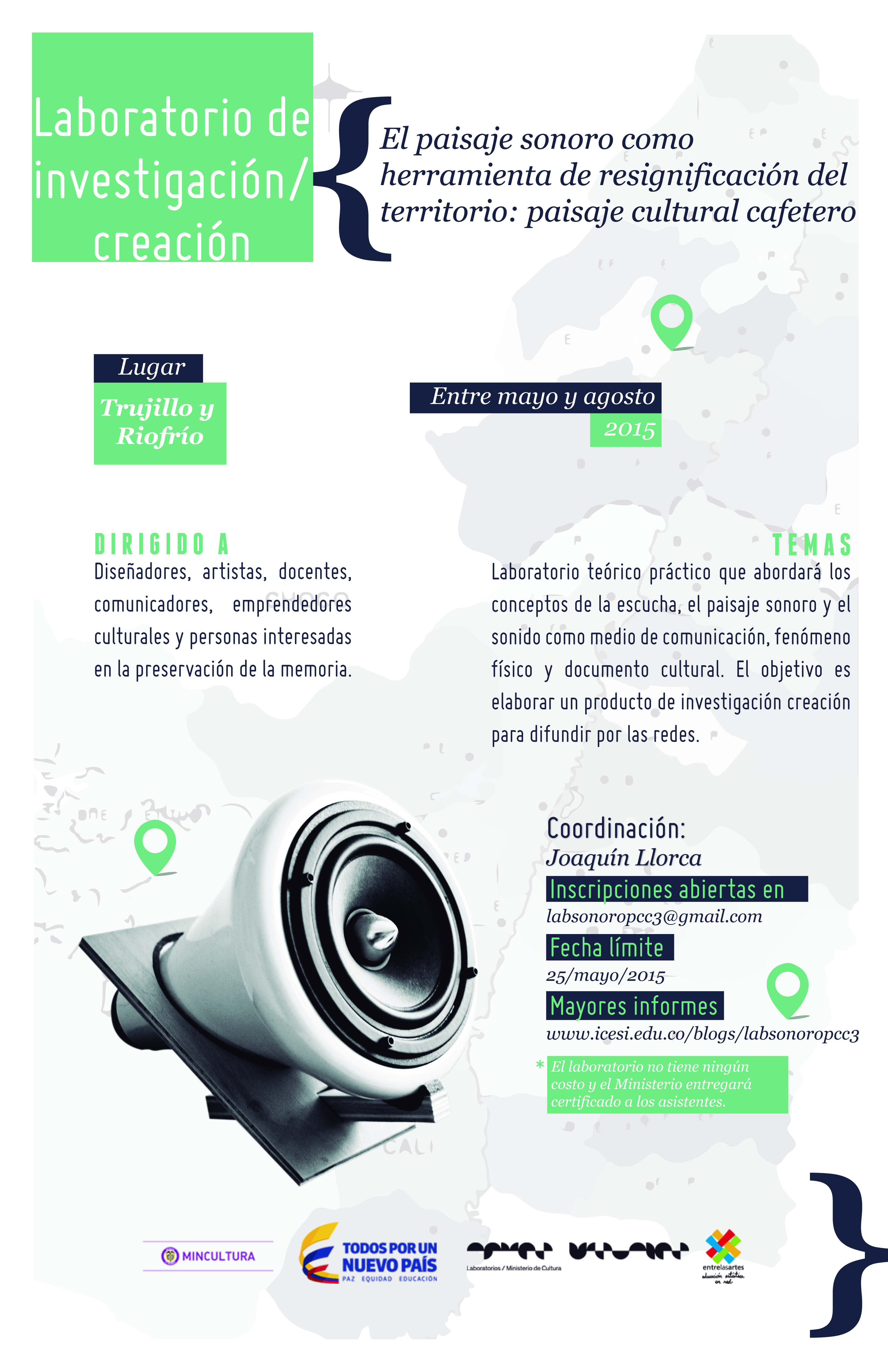El Laboratorio ‘El paisaje sonoro como herramienta de resignificación del territorio: paisaje cultural cafetero’ quiere trabajar la relación entre el paisaje sonoro y la noción de espacio que se representa en los habitantes del llamado, Paisaje Cultural Cafetero en el departamento del Valle del Cauca. Esta vez se realizará en Trujillo y Riofrío.