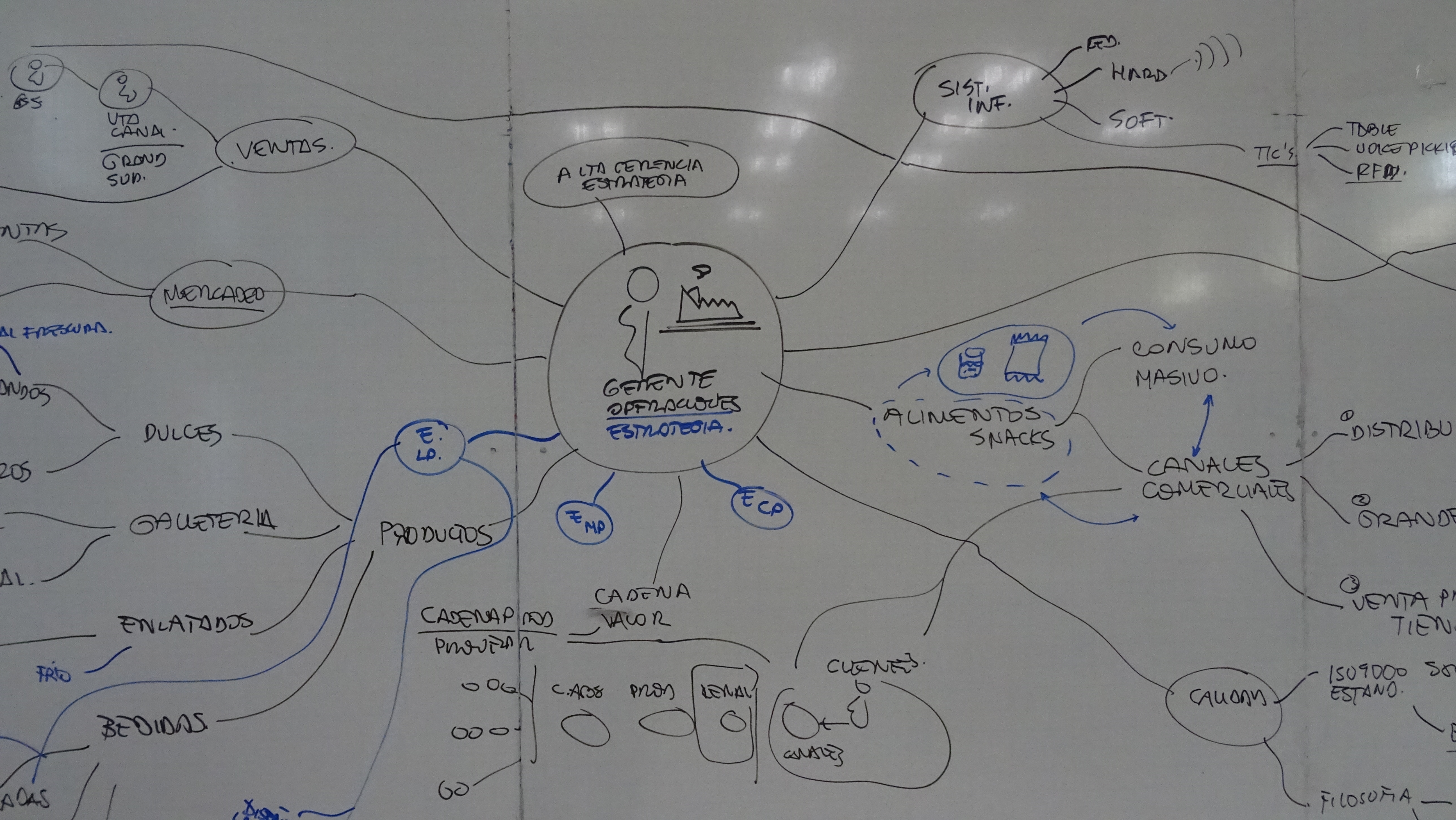 -el profesor en el tablero hizo un mapa mental relacionando la lectura semana pasada , con el tema: con quien se debe relacionar un gerente de operaciones de una empresa. Se hizo un relato de una empresa que describe la actividad del caso de Armando Cajas.