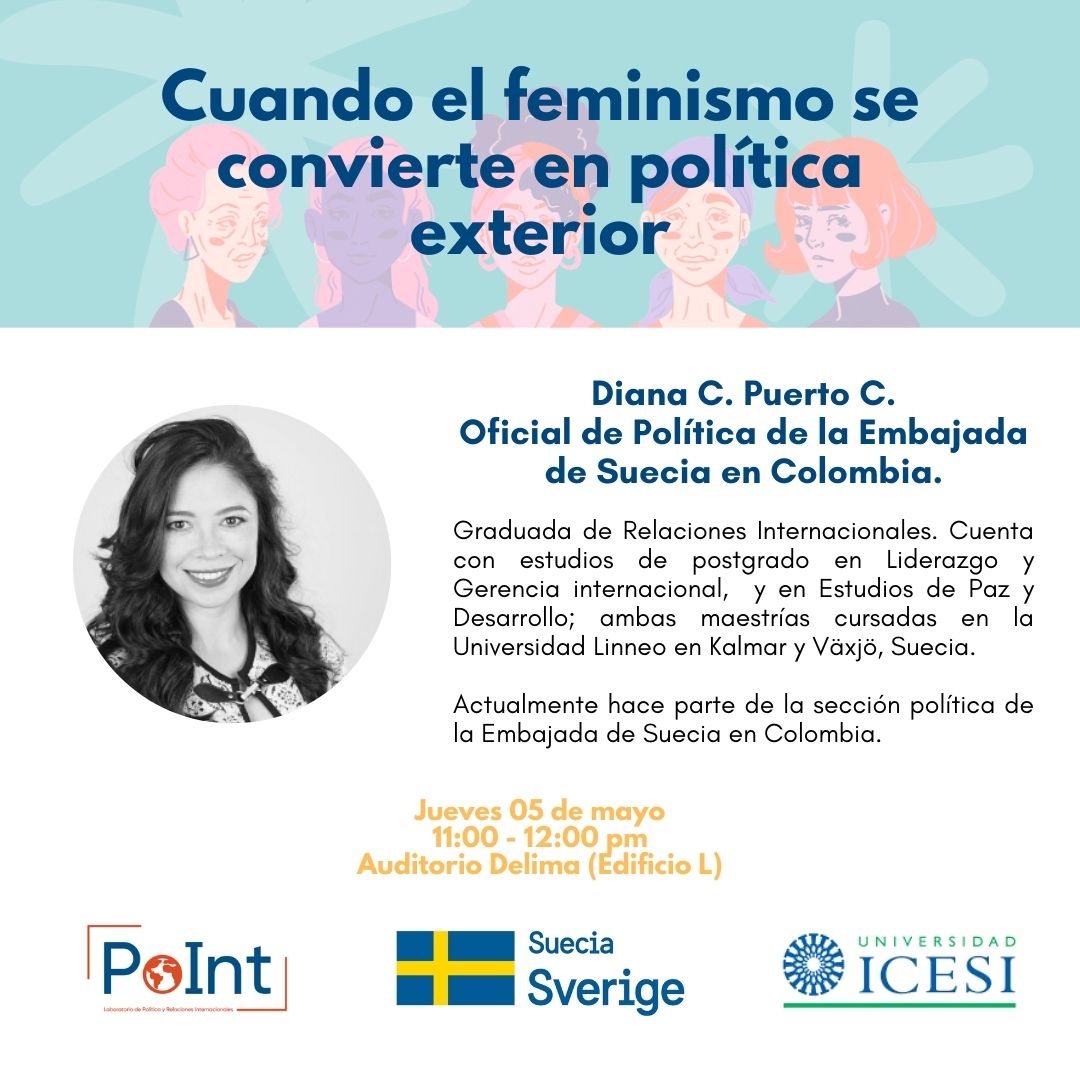 El Laboratorio de Política y Relaciones Internacionales (PoInt) junto a la Embajada de Suecia en Colombia realizaron la charla “Cuando el feminismo se convierte en política exterior”, en la cual se abordaron diferentes cuestiones de la política exterior feminista sueca, tales como su marco, enfoque, estructura e implicaciones.