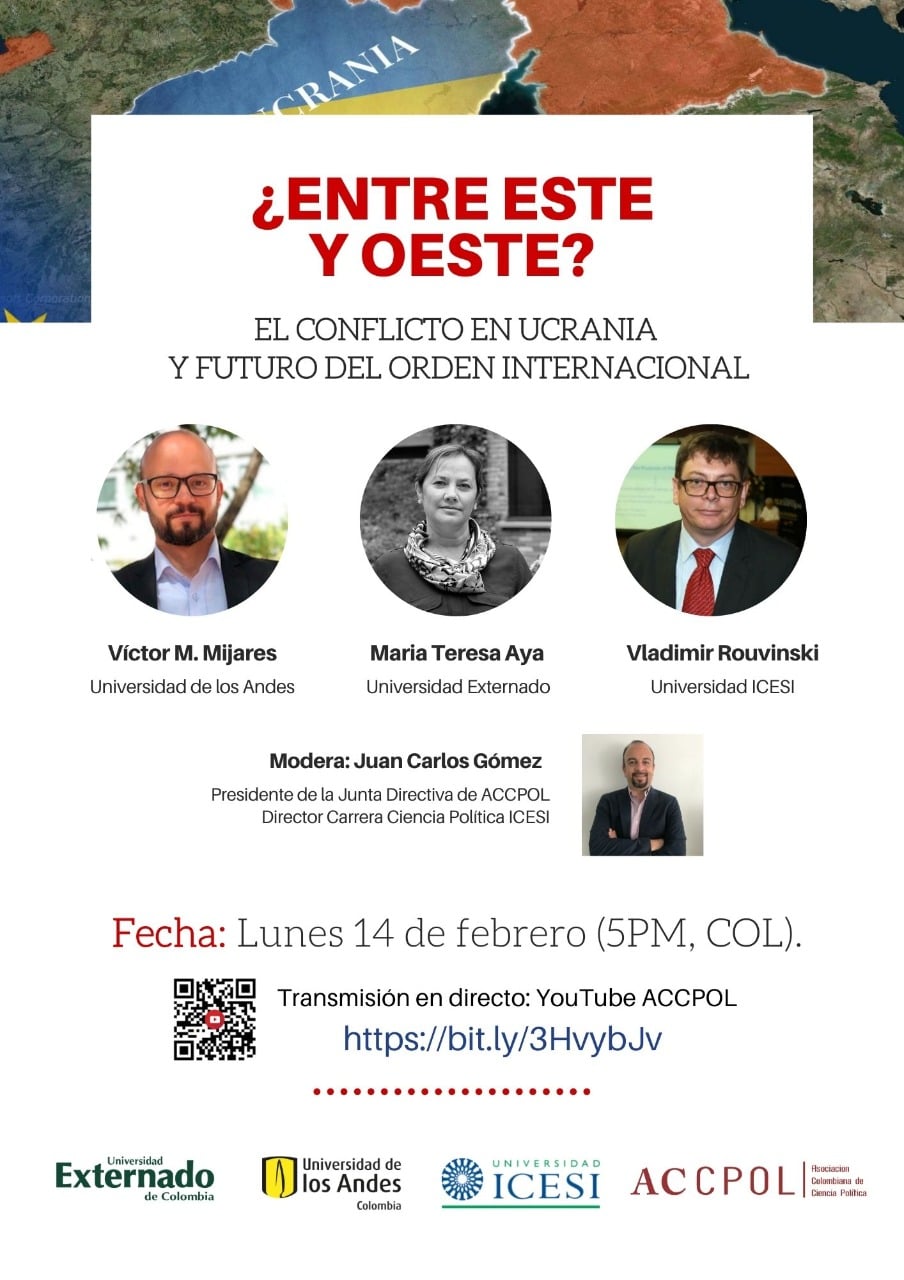 La Universidad Icesi junto a la Asociación Colombianade Ciencia Política -ACCPOL, la Universidad de los Andes y la Universidad Externado de Colombia, realizaron el conversatorio ¿Entre Este y Oeste? El conflicto en Ucrania y futuro del orden internacional. https://www.youtube.com/watch?v=olV_5HCRPD0