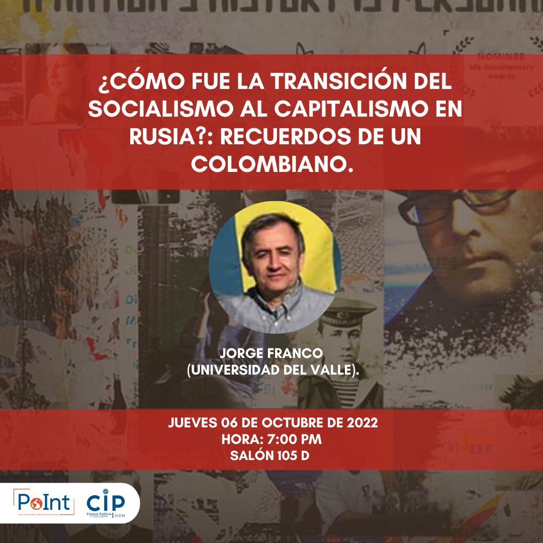 Desde el Laboratorio de Política y Relaciones Internacionales se realizó el conversatorio “¿Cómo fue la transición del socialismo al capitalismo en Rusia?: Recuerdos de un colombiano”. En esta oportunidad nos acompañó el profesor Jorge Franco (Universidad del Valle).