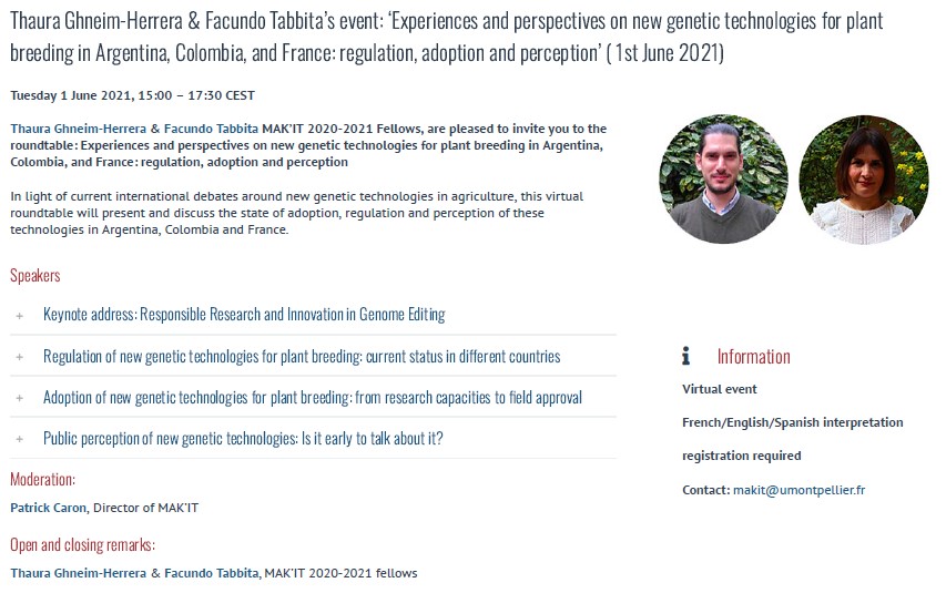 HomeExperiences and perspectives on new genetic technologies for plant breeding in Argentina, Colombia, and France: regulation, adoption and perception Experiences and perspectives on new genetic technologies for plant breeding in Argentina, Colombia, and France: regulation, adoption and perceptionBy Ivonne Julieth Jaramillo Gonzalez / mayo 31, 2021