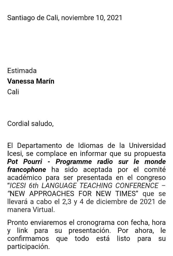 Pot Pourri es un canal radial que fue trasmitido por Radio Samán los lunes de 7:15 a 7:45 p.m. durante el periodo 2021-2; el espacio fue ideado por las estudiantes de Licenciatura en Lenguas Extranjeras Luna Luz Prasca y Vanessa Marín y por la estudiante de Ciencia Política Leidy Johana Zamora, con el fin de hablar sobre y dar a conocer la cultura francófona. Dicho canal, al ser considerado una de las actividades que fomentó el aprendizaje de la lengua francesa durante la pandemia, fue aceptado para ser presentado en el congreso “Icesi 6th Language Teaching Conference – New Approaches For New Times”, un espacio en el que profesores y estudiantes de idiomas tienen la oportunidad de discutir y conversar acerca de temas relacionados con la enseñanza de los idiomas, realizado de manera virtual los días 2, 3 y 4 de diciembre de 2021.