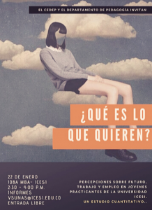 El pasado 22 de enero, el CEDEP y el Departamento de Pedagogía presentaron la primera fase de ¿Qué es lo que quieren?, un proyecto de investigación sobre las percepciones de futuro, trabajo y empleabilidad en jóvenes practicantes de la Universidad Icesi.