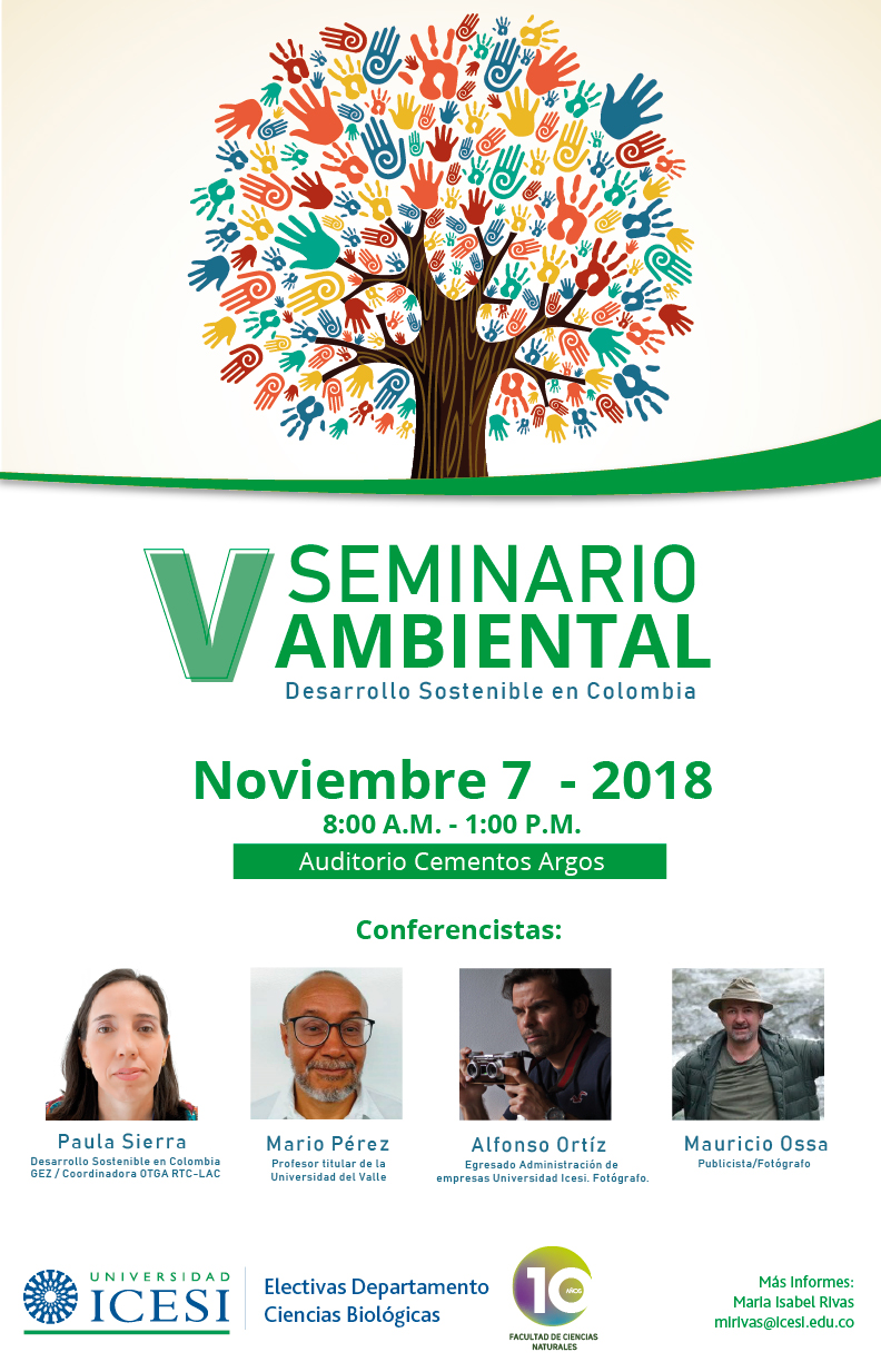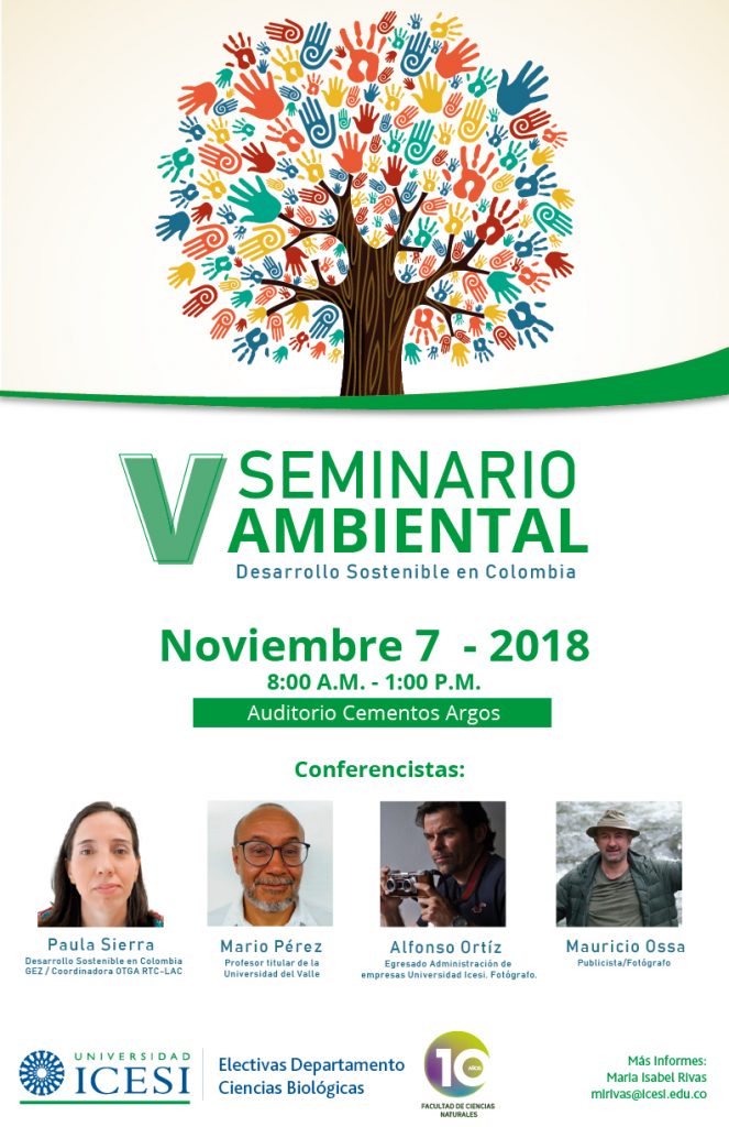 V SEMINARIO AMBIENTAL: El Desarrollo Sostenible en Colombia. Contaremos con la presencia de 4 conferencistas que nos darán diferentes perspectivas sobre este tema.