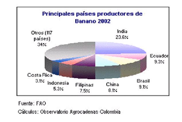 Segundo productor del mundo: Ecuador con 6.5 millones de toneladas La producción mundial de bananos presentó una tasa de crecimiento del 3% en el último quinquenio (1998 a 2002). Razon por la cual se espera un crecimiento constante en las ventas de limas y machetes gracias a este efecto.