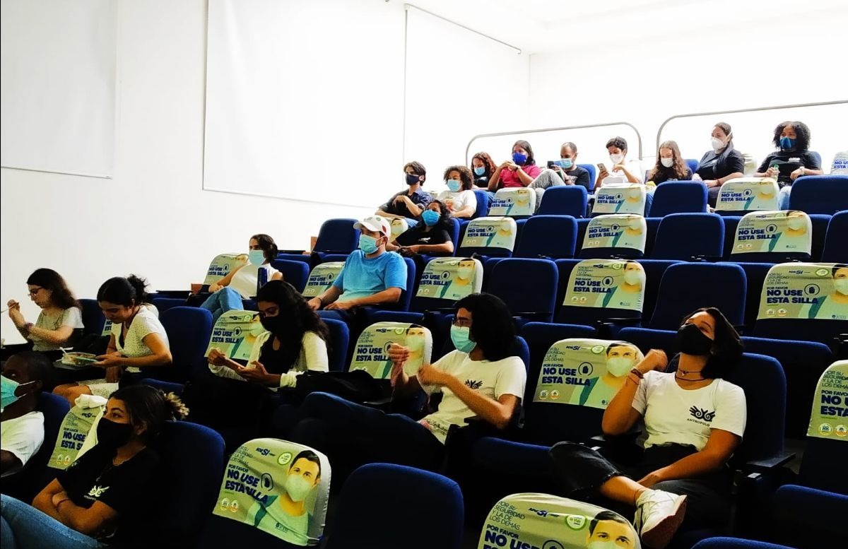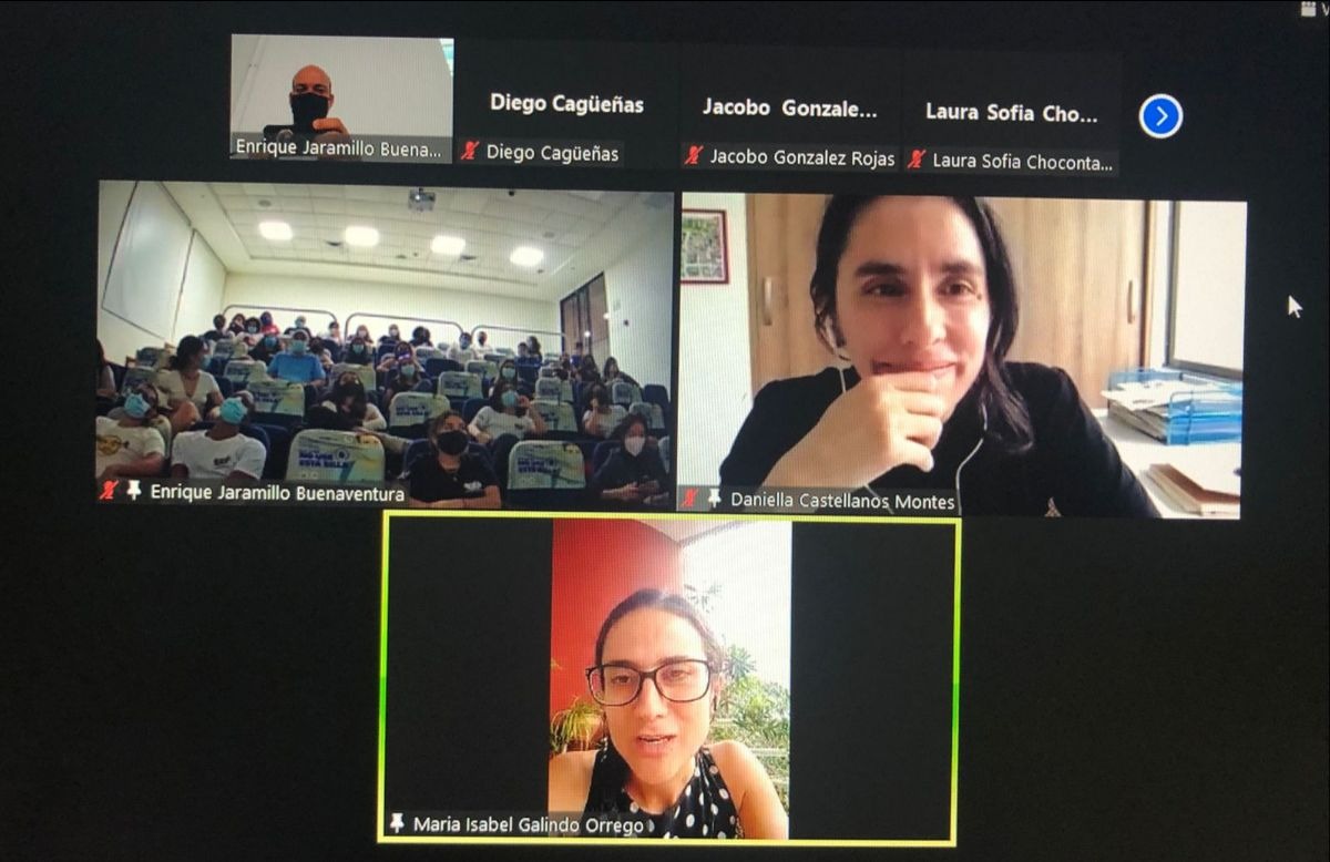 Imágenes de la reunión informativa de inicio de semestre en el auditorio Delima. Compartimos información sobre semilleros, grupos estudiantiles, los 15 años del programa y la reapertura de las salidas de campo y las clases presenciales.