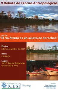 - El V Gran Debate de de Teorías Antropológicas tuvo como eje central la discusión que nació de la sentencia T-622 de 2016 de la Corte Constitucional. En ella se ordena que el Río atrato, su cuenca y sus afluyentes, deben ser tomados como una entidad sujeto de derechos cuya protección, conservación, mantenimiento y restauración deben estar a cargo del Estado y las comunidades étnicas.