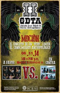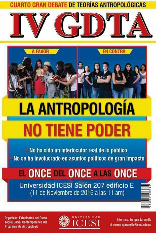 El programa de Antropología desarrolla cada año un gran debate organizado por los estudiantes del curso de Teoría Social Contemporánea. Esta idea se inspira en los tradicionales debates de la escuela de Manchester (The group for debates in anthropological theory (GDAT)