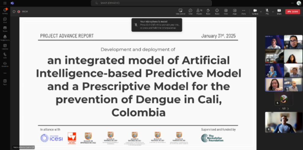 El 10 de febrero de 2025, investigadores de la Universidad Icesi y la Universidad del Valle se reunieron para seguir avanzando en Dengue.IA, una herramienta diseñada para predecir brotes de dengue y mejorar su gestión. Durante la jornada, liderada por el ingeniero Daniel Osorio y la epidemióloga Lyda Osorio, se definieron los hitos clave del modelo, considerados esenciales para el proyecto.
