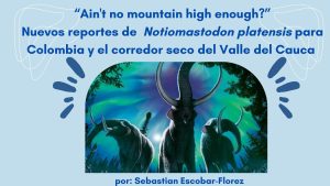 El 7 de Marzo el profesor Juan Sebastian Escobar Flórez dio en la Universidad Icesi su charla ““Ain’t no mountain high enough?” Nuevos reportes de Notiomastodon platensis para Colombia y el corredor seco del Valle del Cauca” en donde nos contó el más reciente trabajo publicado sobre mastodonte para Colombia. La charla del profesor al igual artículo publicado en la revista Historical Biology analiza en a profundidad las características anatómicas que permite identificar a este grupo de proboscídeos, sus características paleoecológicas y su presencia en el territorio colombiano. Este articulo es fruto de un trabajo en conjunto entre investigadores de la National Geographic Society, el Instituto Smithsonian de Investigaciones Tropicales y la Universidad Federal del Estado de Rio de Janeiro con el que se pretende establecer un precedente investigativo sobre megafauna en Colombia y el Neotrópico.