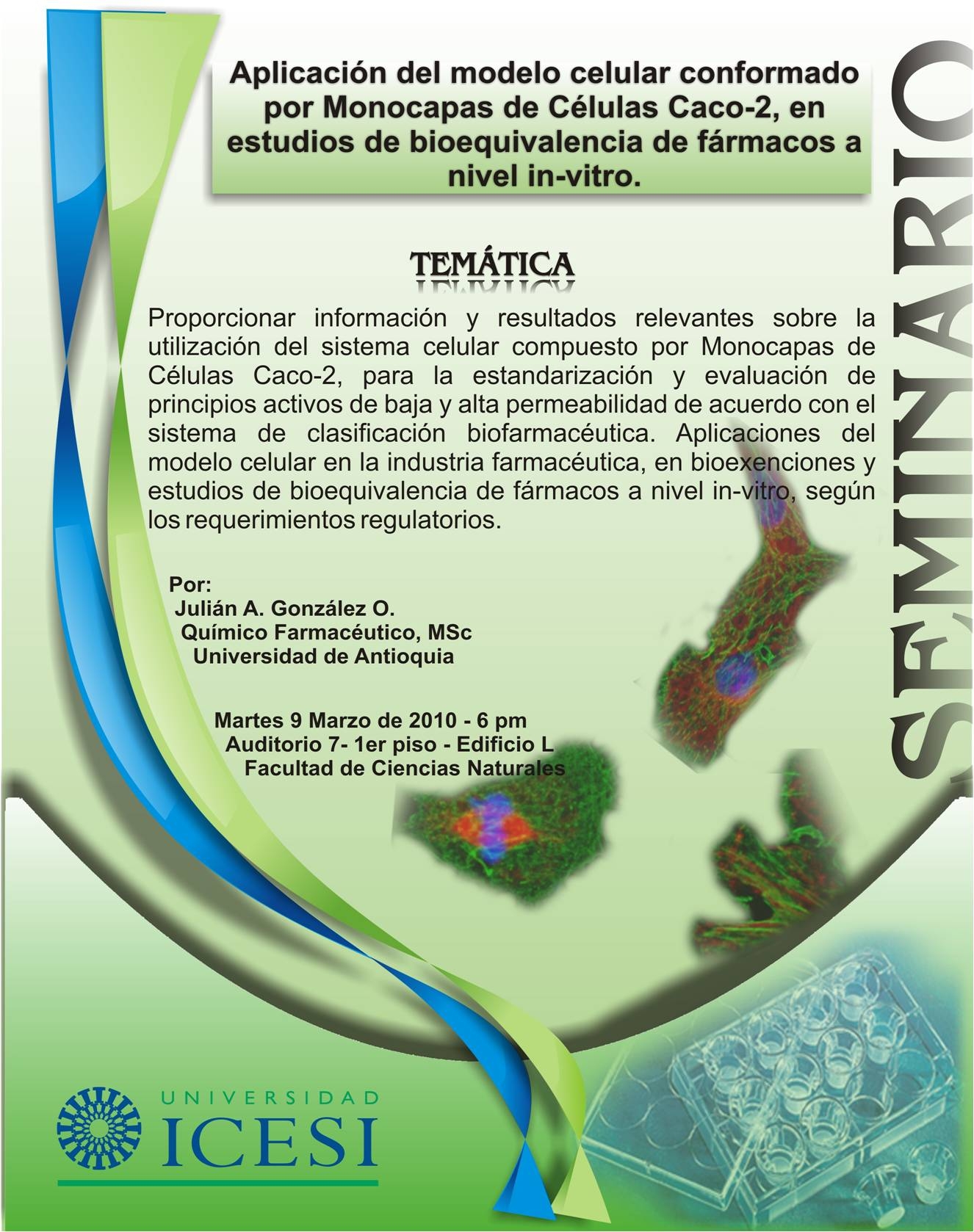 Seminario: Aplicación del modelo celular conformado por Monocapas de Células Caco-2, en estudios de bioequivalencia de fármacos a nivel in-vitroBy Ivonne Julieth Jaramillo Gonzalez / 9 marzo 2010