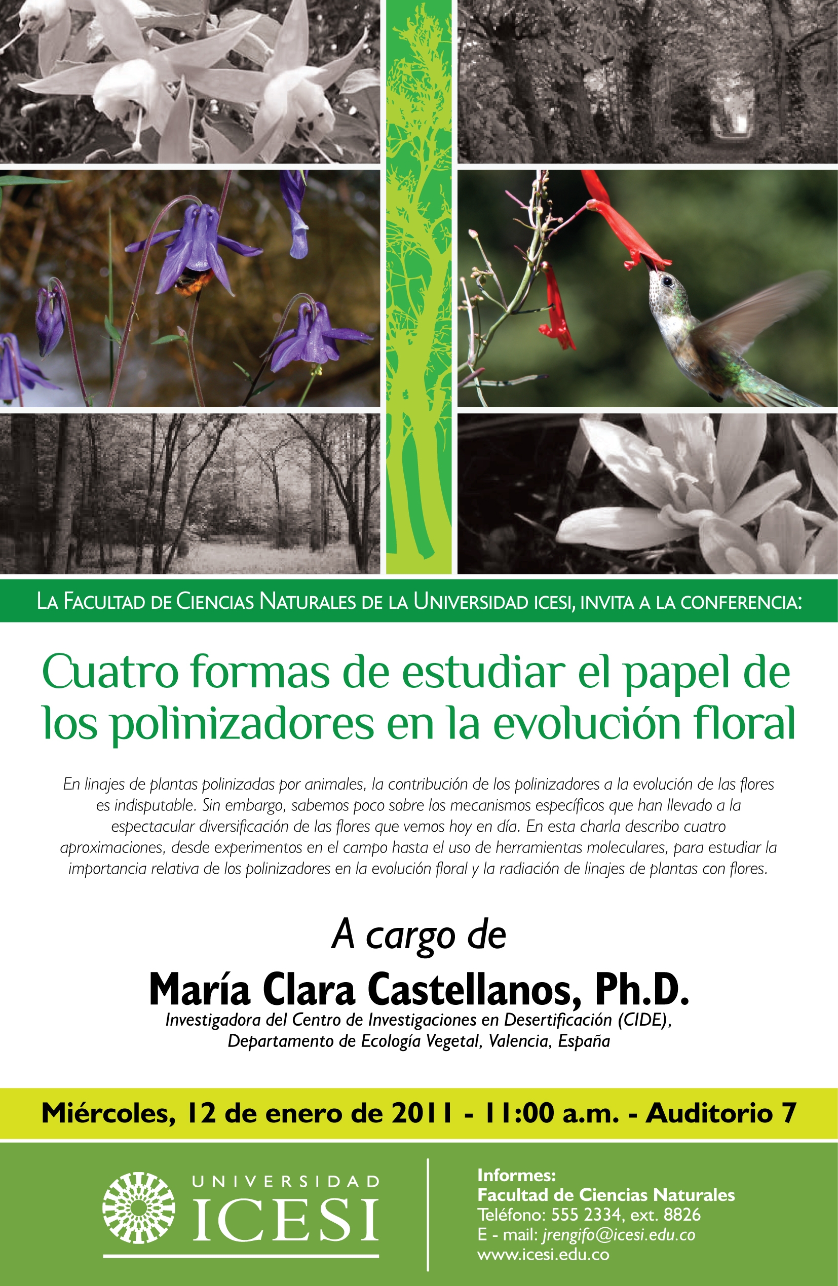 En linajes de plantas polinizadas por animales, la contribución de los polinizadores a la evolución de las flores es indisputable. Sin embargo, sabemos poco sobre los mecanismos específicos que han llevado a la espectacular diversificación de las flores que vemos hoy en día. En esta charla describo cuatro aproximaciones, desde experimentos en el campo hasta el uso de herramientas moleculares, para estudiar la importancia relativa de los polinizadores en la evolución floral y la radiación de linajes de plantas con flores.
