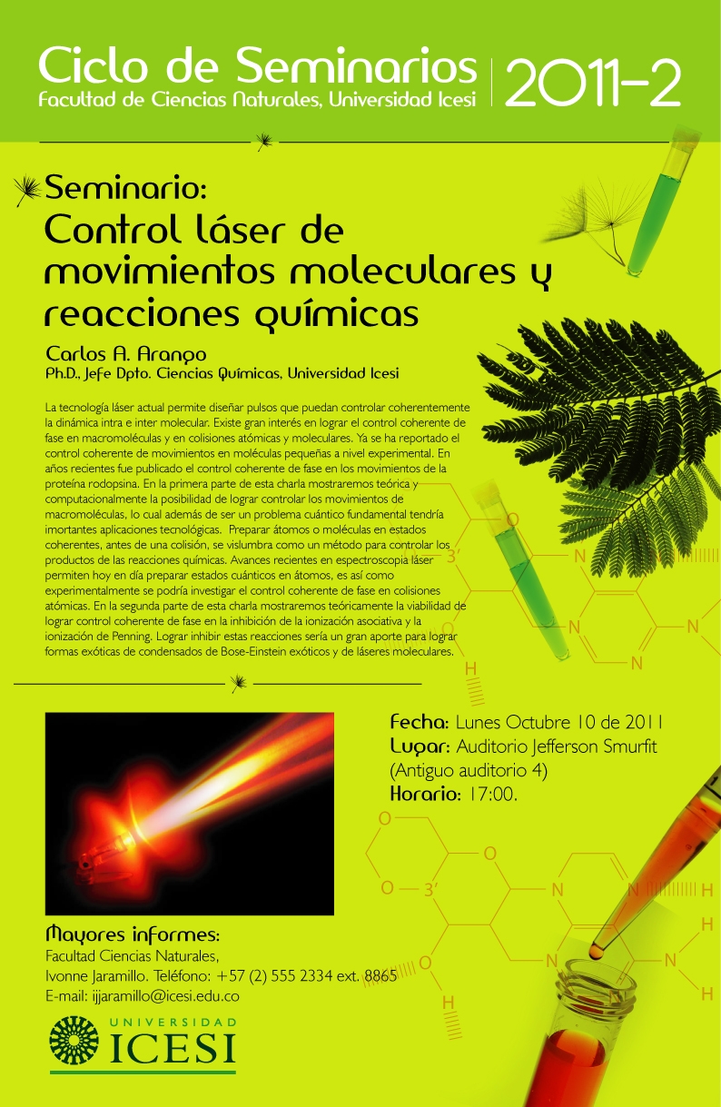 Seminario: Control láser de movimientos moleculares y reacciones químicasBy Ivonne Julieth Jaramillo Gonzalez / 5 octubre 2011 La Facultad de Ciencias Naturales de la Universidad Icesi los invita a asistir al: