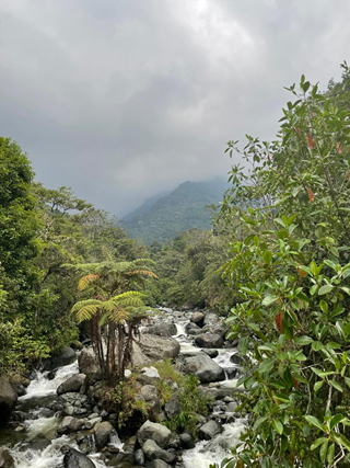 Finalmente, los estudiantes, junto con la docente Ana María Valencia, llegaron a la cuenca alta del río Pance, en el Parque Natural Farallones de Cali, en el sector de “El Pato”. A través de esta caminata de aproximadamente 5k, se adentraron en el ecosistema de Bosque Andino o también conocido como Bosque de Niebla.