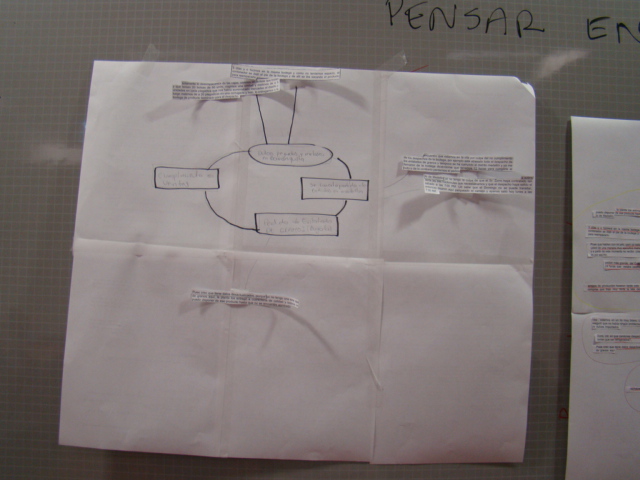 Se toma el caso de estudio y se determinan los temas principales que componen la descripción de la situación definida como compleja. Estos se colocan en círculo y se conectan mediante conectores de doble vía. Posteriormente a partir de dichos temas principales, se decribena través de descripciones tomadas del caso y se distribuyen en círculo alrededor de tema. Siempre se unen mediante conectores de doble vía. La circularidad es la constante del desarrollo del hipertexto.