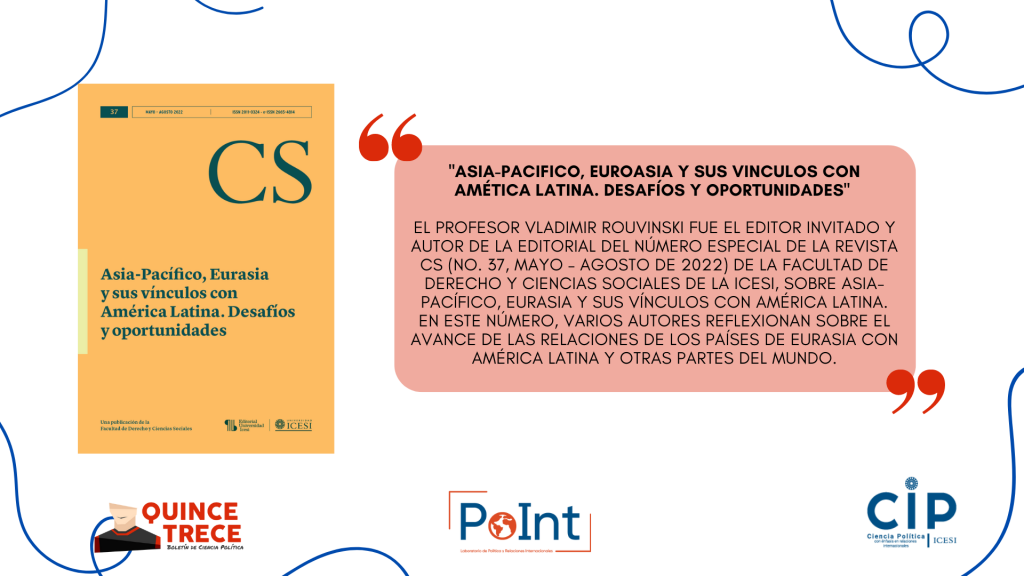 - “Asia-Pacifico, Euroasia y sus vínculos con América Latina. Desafíos y oportunidades” https://www.icesi.edu.co/revistas/index.php/revista_cs/issue/view/313