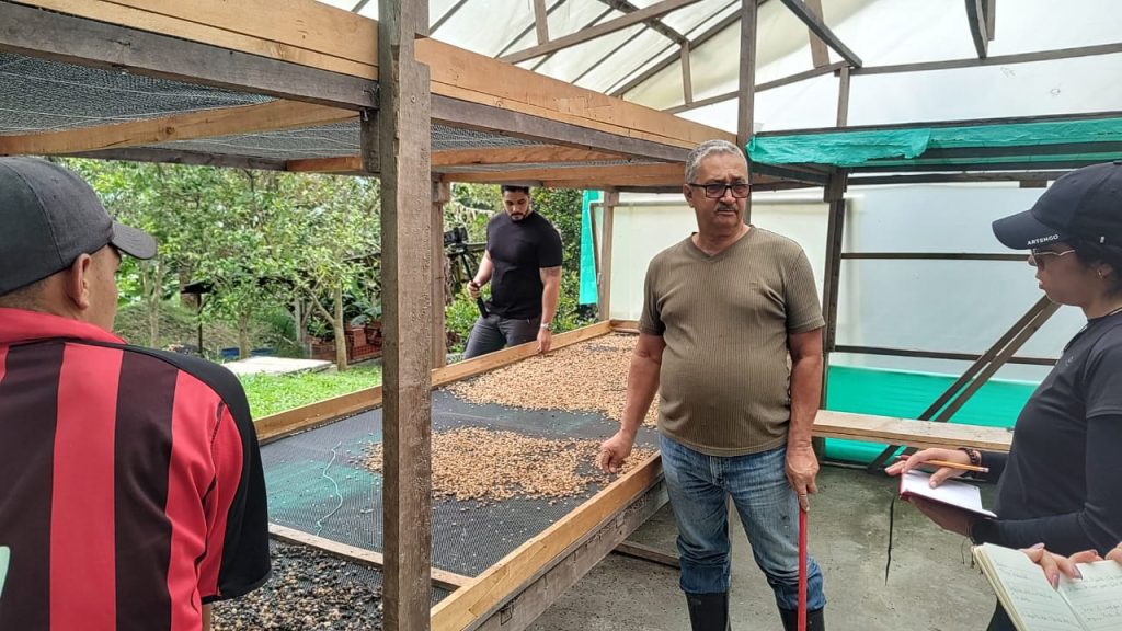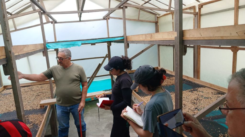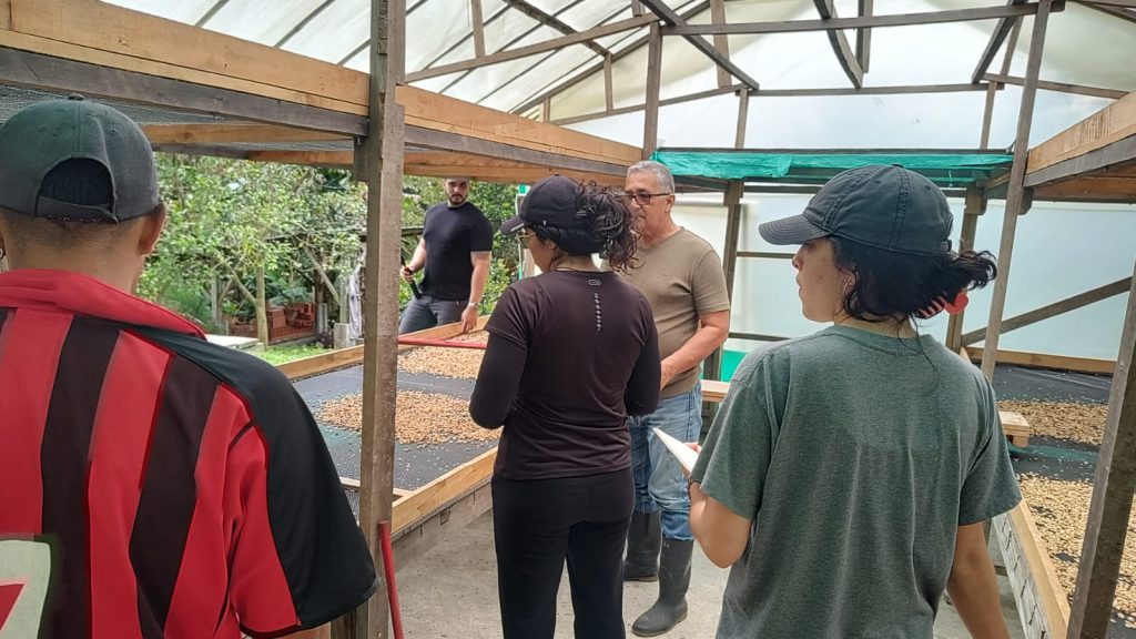 Empezando en la estación de lavado, luego se pasó a los dos centros de secados que fueron construidos por ellos, para aprovechar el espacio de la finca y acelerar el proceso de preparación de los granos de café.