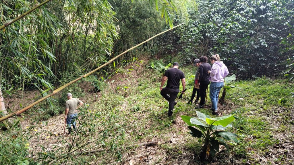 La primera salida de campo de la investigación se realizó el sábado 15 de marzo de 2025, en la que participaron: el Director de la investigación Andrés López, la profesora Laura Silva, las estudiantes Juliana Rosas, Isabella Cortes, Eliana Medina y yo. Salimos de Cali en la mañana con dirección a Calima por carretera y al llegar estaban el dueño Don Roberto y su hijo Jorge, como también la familia encargada de la finca con Don Jairo, su mujer e hija. Al ser la primera salida de campo del proyecto, se tuvieron reuniones previas para organizar las actividades a realizar, como las entrevistas, junto con los cuestionarios y las personas encargadas, pero también esta salida se tomó como una “salida exploratoria”.