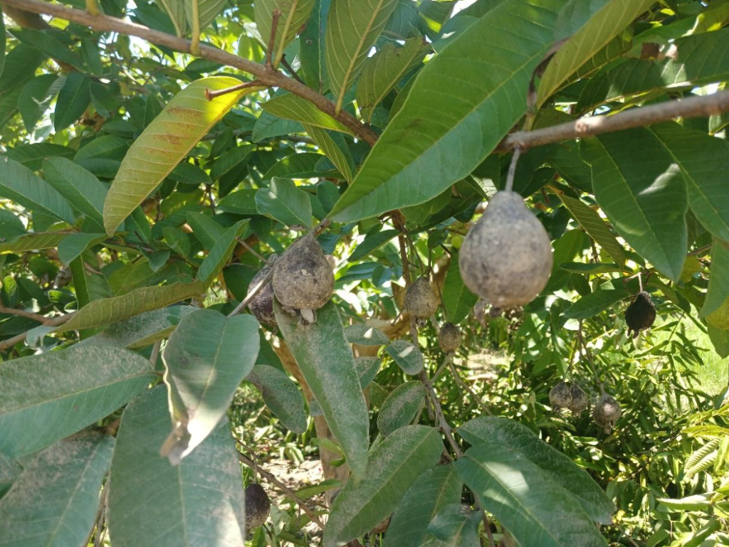 Jaime nos señaló las huellas del agua en los troncos —una línea oscura y seca que subía hasta media altura— y allí era donde se ejemplificaba la enfermedad de los árboles. Asimismo, ellos nos invitaban a observar más de cerca, donde podíamos distinguir las pequeñas marcas que dejaban las plagas o los hongos; marcas mínimas que, aunque no afectan el sabor, hacen que la fruta perdiera valor comercial.