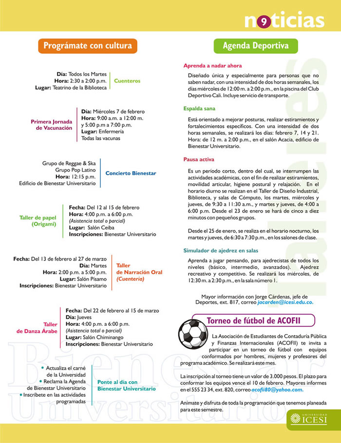 Mayor información con Sandra Jaramillo, ext.726, correo sjaramillo@icesi.edu.co.