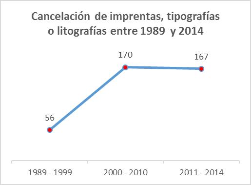 Por otra parte, la fuente con la que se trabajó para determinar la evolución de la industria gráfica entre 1949 y 2014 fue el archivo de Cámara de Comercio de Cali. Esta fuente da constancia del año en que se constituye el negocio y, en la mayoría de los casos, el año de cierre. Desafortunadamente, estos archivos solo dan cuenta de la actividad a partir de la segunda mitad del siglo XX.