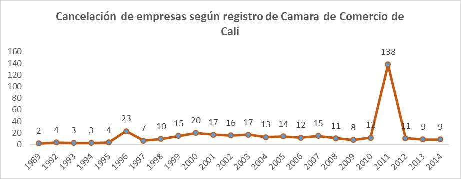 En especial en 1996 y el 2011 se encontró el mayor número de empresas canceladas. En 1996 se cancelaron 23 empresas mientras que en el 2011 se cancelaron 138, lo cual demuestra un descenso significativo del desarrollo de este sector en el barrio San Nicolás.