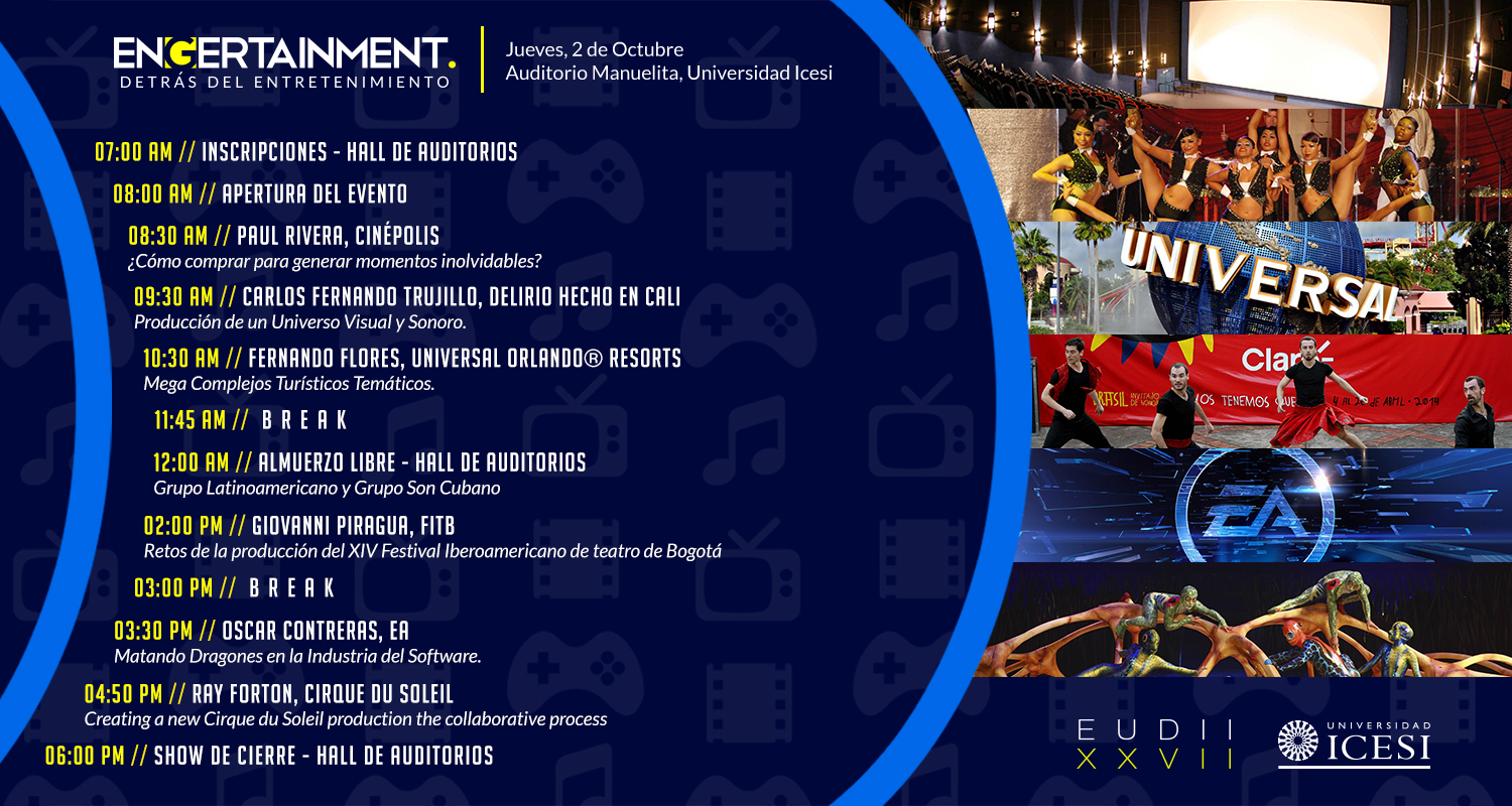 El EUDII es un evento académico gratuito dirigido a toda la comunidad estudiantil y para todo el público asistente. Tiene como objetivo enriquecer a los espectadores con experiencias empresariales en temas relacionados con la ingeniería industrial aplicada, que contribuyen a su crecimiento profesional y personal. En esta ocasión se realizará la versión 27, cuyo nombre es ENGERTAINMENT detrás del entretenimiento.