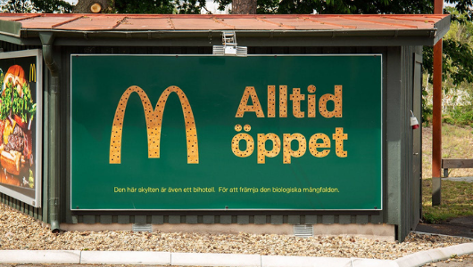 Otra de las recientes acciones de McDonald’s en Suecia que ha contado también con la colaboración de Nord DDB ha sido crear vallas publicitarias que funcionen como hoteles para que las abejas silvestres puedan descansar. Las vallas publicitarias son instalaciones permanentes hechas de madera con agujeros perforados tanto en la copia como en el logotipo donde pueden descansar estos animales. La iniciativa fue inspirada por la franquiciada Christina Richter, que comenzó a tener colmenas en los techos de sus restaurantes McDonald’s.