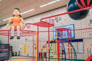 En la estación se colocó decoración alusiva a la serie, videos, y lo más llamativo, una muñeca gigante que guía el juego «Luz verde, luz roja». A lo largo de las escaleras, el área de la estación también está llena de fondos de pantalla con temas de Squid Game.