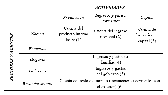 4. Macrosectores. Se define el macrosector nación y el macrosector resto del mundo de acuerdo con el criterio de residencia de los agentes económicos. Las actividades económicas y los agentes del macrosector resto del mundo no se discriminan.
