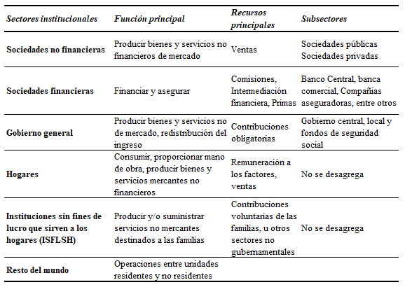 Conocida la estructura básica del SCN2008, se pueden ver ahora con mayor detalle sus partes componentes. En esta sección se presentan los criterios de clasificación de los agentes en los sectores y subsectores institucionales y en la siguiente se estudian las interrelaciones entre las diferentes cuentas y se definen las transacciones.