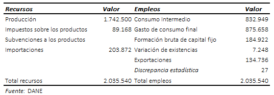 El sistema puede reducirse a cuentas agregadas que describen las actividades de producción, consumo y acumulación a nivel macrosectorial y es prácticamente igual al sistema simplificado de cuentas nacionales del Capítulo 9. De hecho, como recordará el lector, el Cuadro 9.1 fue elaborado con base en cifras del cuadro “Principales agregados macroeconómicos” publicado por el DANE.
