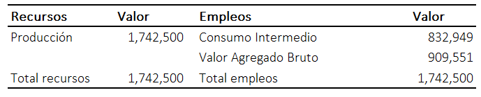 La siguiente cuenta macrosectorial es la cuenta de producción, en ella se establece el resultado de la producción como la suma de las materias primas y la remuneración a los factores (véase Cuadro 11.4). Las materias primas se denominan consumo intermedio y el saldo de la cuenta es el valor agregado bruto.