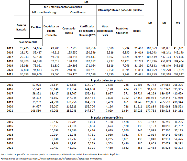 Banco de la República. “Guía Metodológica Agregados Monetarios y Crediticios”.