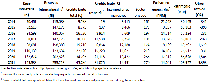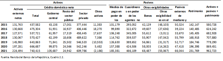 Con la información del Cuadro 15.1 puede calcularse fácilmente el multiplicador de los medios de pago. Por ejemplo, para fin de 2021: