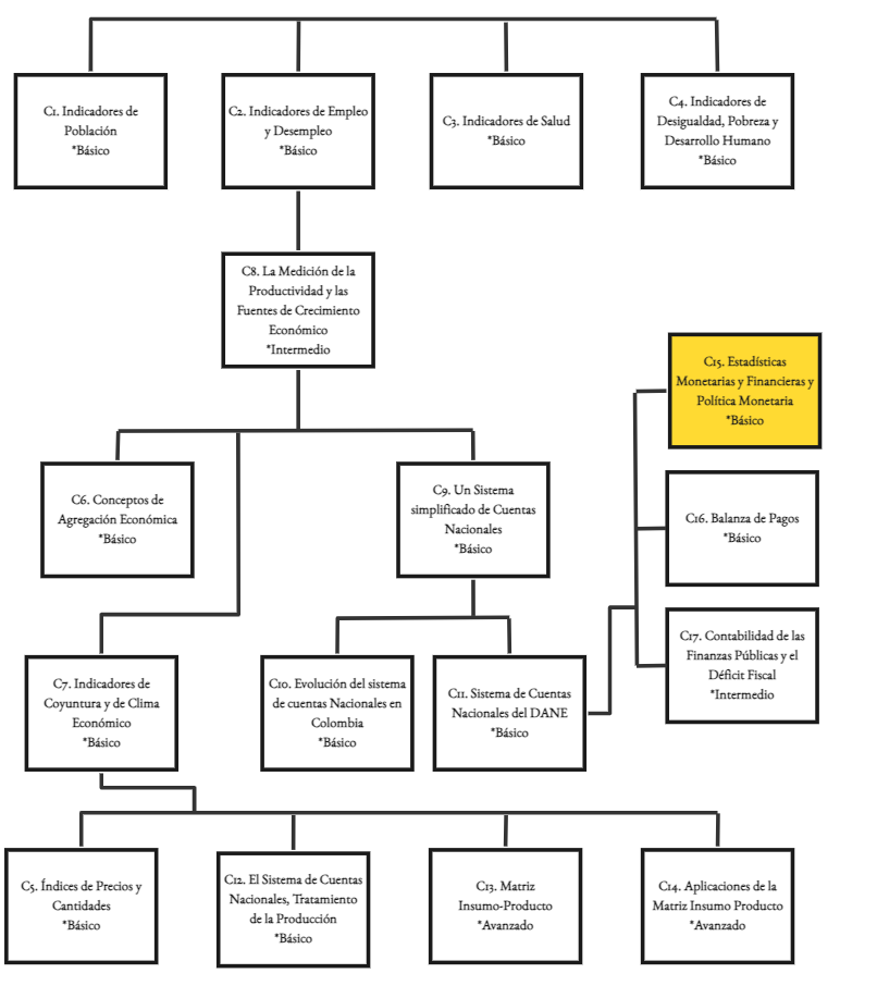 En este capítulo nos ocuparemos de las estadísticas monetarias y financieras que publica el Banco de la República, que son un insumo muy importante para las decisiones de política monetaria y para el seguimiento y prevención de los riesgos financieros. También le dedicaremos algún espacio a explicar cómo se define la ‘tasa de interés de política monetaria’, que es el instrumento más importante de la política monetaria, y cómo se difunden sus efectos por diferentes canales hasta afectar la inflación. No estudiaremos aquí las llamadas cuentas financieras que forman parte del sistema de cuentas nacionales, puesto que este tema ya fue cubierto en el Capítulo 11. Sin embargo, es importante mencionar que esas cuentas son construidas con las mismas fuentes que las que estudiamos en este capítulo, pero no exactamente con base en los mismos conceptos. Las estadísticas de este capítulo se producen con mucha mayor frecuencia que las cuentas financieras y se desagregan en forma distinta porque los objetivos de las políticas monetaria y financiera así lo requieren.
