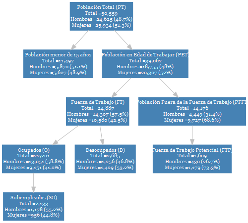 • Manejar los conceptos de clasificación laboral (población en edad de trabajar, fuerza de trabajo, ocupados, desocupados, fuera de la fuerza de trabajo, subempleo).