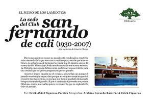 Erick Abdel Figueroa Pereira Rotativo Cali 01 Septiembre 2009 El muro de los lamentos: La sede del Club San Fernando Descargar artículo Tags: Arquitectura, Cali, Historia