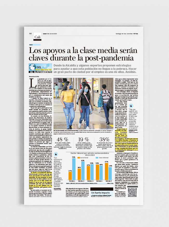 Las diferencias significativas en tanto a la proporción de los sectores laborales por estrato socioeconómico son un tema importante. Los desequilibrios contextuales de la crisis por coronavirus en la ciudad, hacen que el esfuerzo gubernamental se enfoque en proteger a los más desaventajados y los apoyos de acceso al crédito son un punto clave.