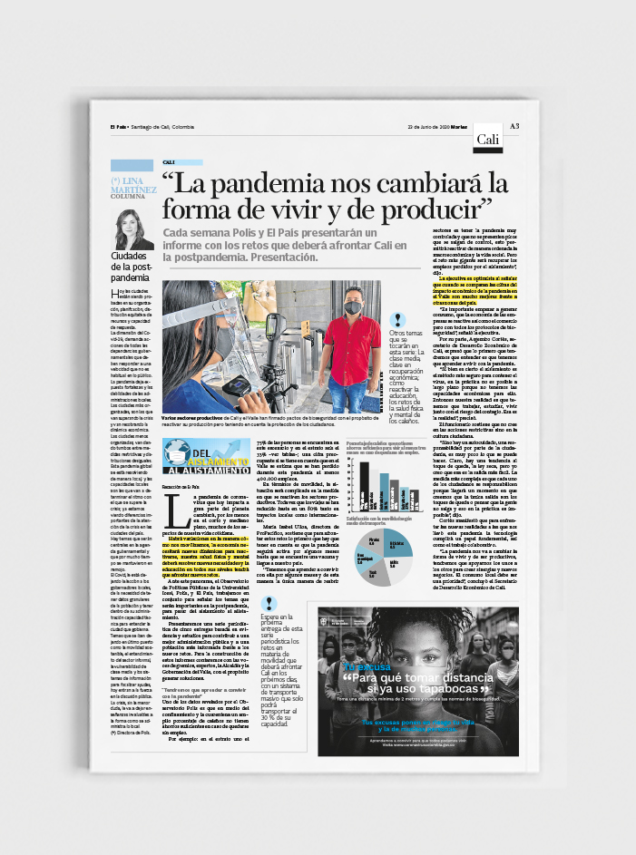 En este proyecto, cada semana Polis y El País presentarán un informe con los retos que deberá afrontar Cali en la postpandemia.