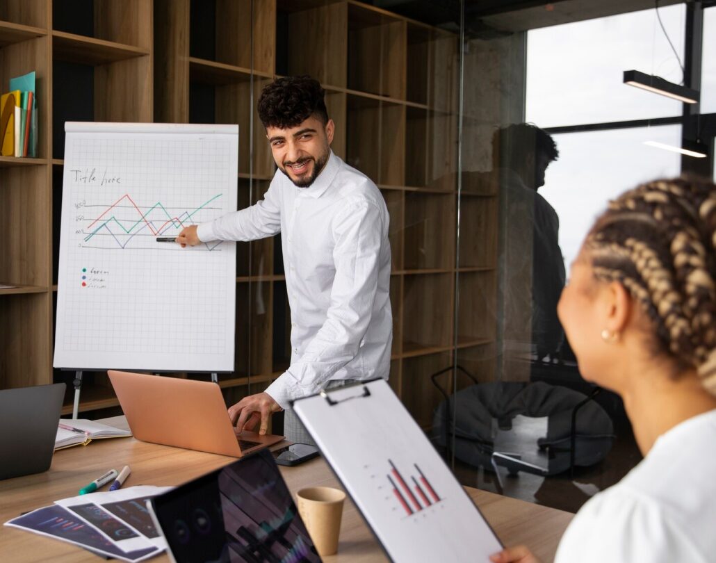 Aprende a comunicarte de manera efectiva y respetuosa en el entorno empresarial. Nuestro programa te enseña a expresar tus ideas con claridad, mejorar la relación con compañeros y superiores, y manejar conflictos de manera constructiva. A través de ejemplos reales y técnicas prácticas, desarrollarás habilidades esenciales para presentar proyectos, liderar equipos y potenciar tu crecimiento profesional en la empresa.