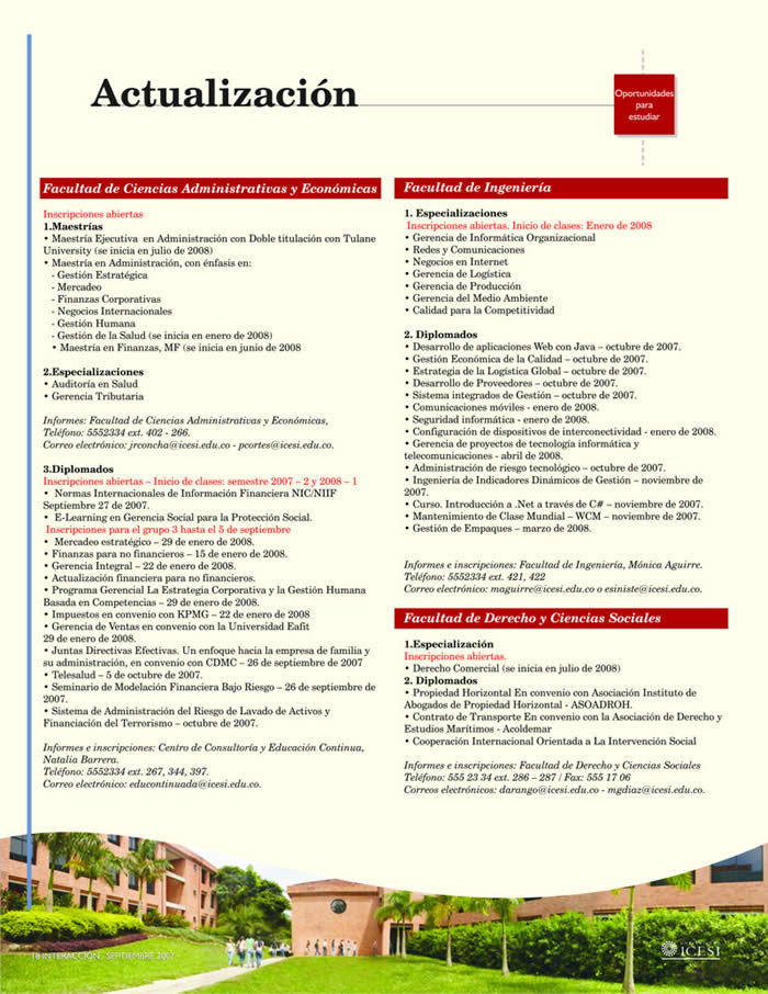 Correo:educontinuada@icesi.edu.co Correo: jrconcha@icesi.edu.co Correo: maguirre@icesi.edu.co Correo: darango@telesat.com.co Universidad Icesi