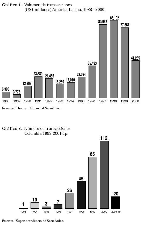 El fenómeno de las fusiones y escisiones empresariales es un síntoma de los cambios económicos actuales que exigen a las empresas cada vez mayor eficacia y competitividad. En los gráficos 1 y 2 se observa cómo el número de transacciones (fusiones) en América Latina y Colombia tuvieron una evolución similar en los últimos años: