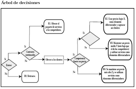 Un plan de entrada potencial que una empresa podría utilizar en la estructuración de su decisión de entrar, es el árbol de decisiones. Al emplear un árbol de decisiones para modelar la forma en la cual las empresas piensan entrar a la industria, es posible identificar los factores que mantienen fuera a las nuevas empresas que desean entrar. Estos factores, que tienden a impedir la entrada de nuevas empresas se conocen como barreras de entrada, estas barreras son significativas porque determinan en gran parte lo amistoso del ambiente en el cual competirá la organización.