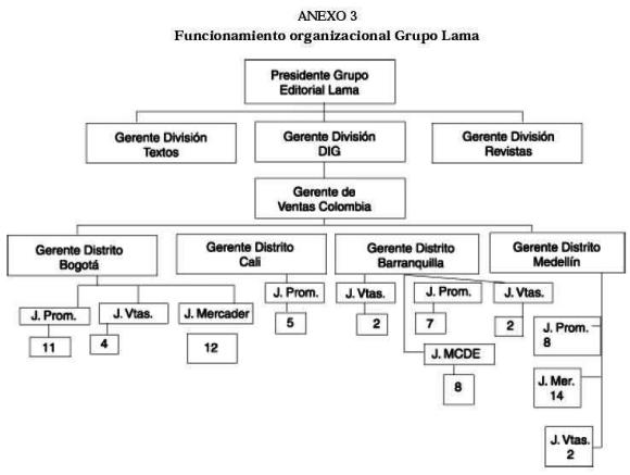 El presidente del Grupo Editorial Lama, pensaba que sin lugar a dudas deberían realizarse cambios en la organización de ventas de su División DIG en Colombia, además de haberse vuelto muy costosa para el volumen de ventas logrado (en el último año había costado un 15% de las ventas netas de la División, y su meta era llegar al 10%), en los dos últimos años no había alcanzado las metas de ventas propuestas y esta División había perdido un 3,5% del mercado donde aún mantenía una frágil posición de liderazgo.