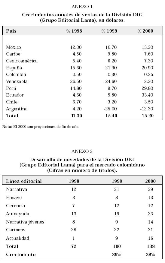 Editorial Lama tenía ya más de cuarenta años en el mercado colombiano y había conquistado una posición de liderazgo en sus dos divisiones principales (Textos Escolares y Libros de Interés General), pero la División de Libros de Interés General (DIG) no había logrado las metas de crecimiento propuestas para el mercado colombiano en los dos últimos años, a pesar de haber aumentado la producción de títulos nuevos en más de un 38% cada año, entre los que podían contarse varios de autores muy reconocidos.