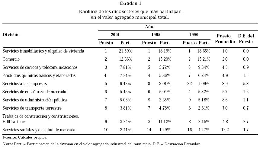 Al considerar los sectores que más aportan al nivel de actividad económica del municipio de Santiago de Cali se encuentra que el sector de servicios inmobiliarios y alquiler de vivienda es el que en el período de estudio siempre ha ocupado el primer puesto. Este es seguido por el sector comercio, las telecomunicaciones, los productos químicos, los servicios a las empresas, entre otros (Ver Cuadro 1).