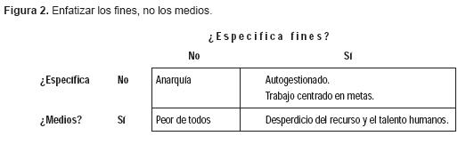 La respuesta a estos interrogantes se consigna en la Figura 2, aclarando que aquellos que han experimentado con el trabajo en equipo recomiendan enfatizar los fines y no los medios para conseguir los resultados.